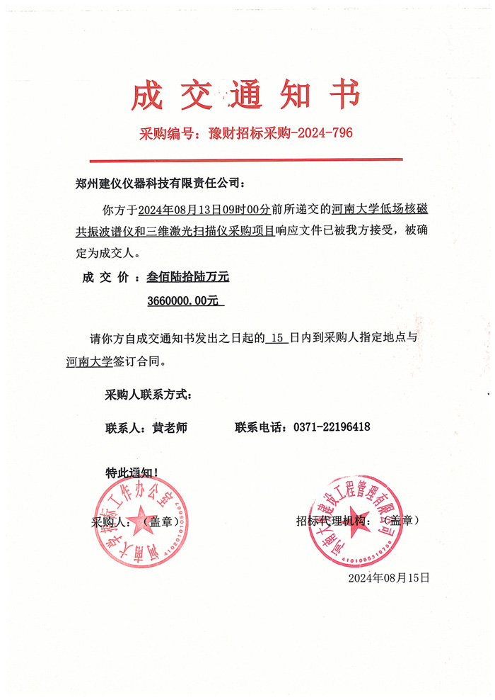 2024-796河南大學低場核磁共振波譜儀和三維激光掃描儀采購項目